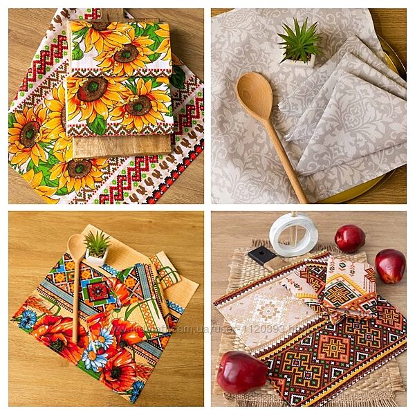 Забарвлення серветок та асортимент кухонного текстилю можна переглянути в галереї