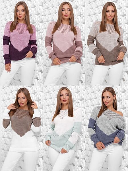 Подробное описание: Женский вязаный Джемпер Свитер Сердце шерсть акрил 46-52