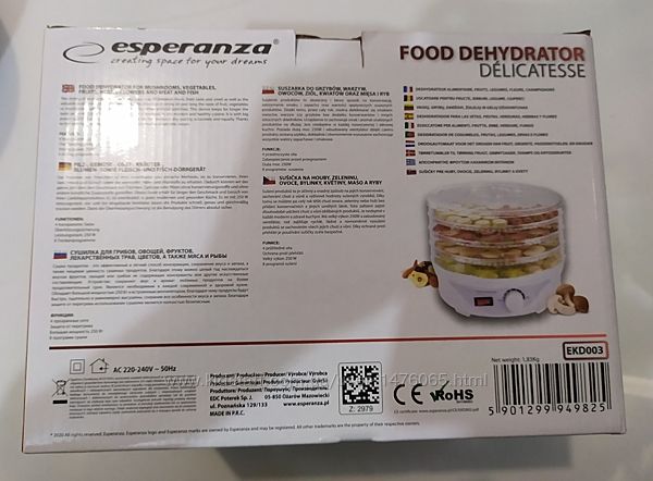 Подробное описание: Новая небольшая сушка для фруктов из Европы Esperanza EKD003 с гарантией