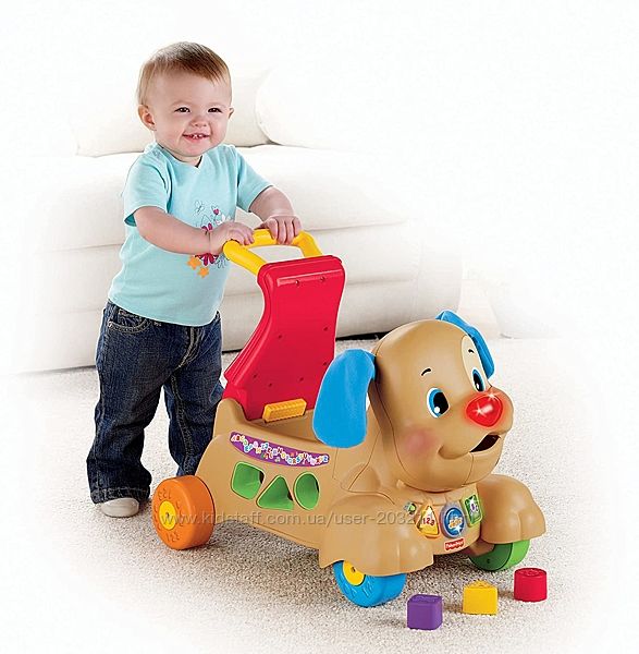 Только оригинальный товар!Fisher-Price Каталка-ходунки толкатели Веселый Щенок W9740 Laugh Learn Stride-to-Ride Puppy .