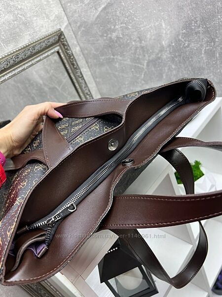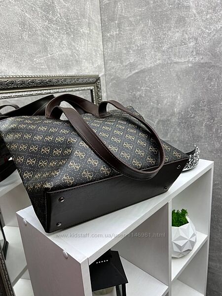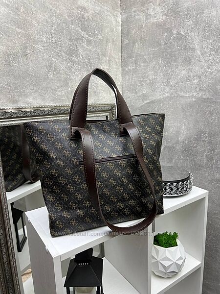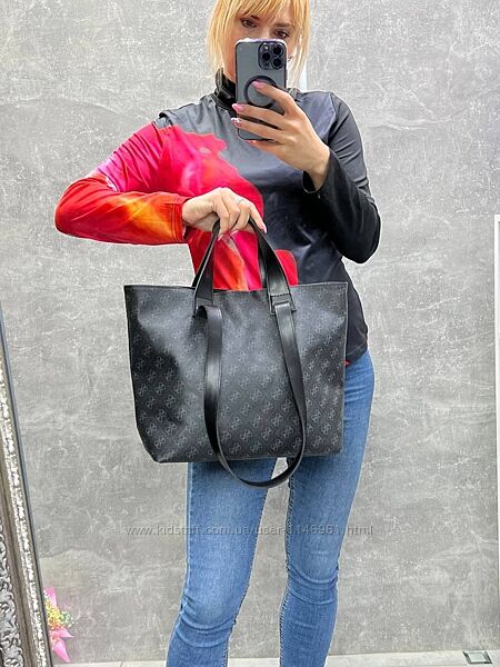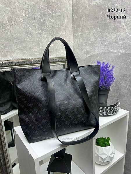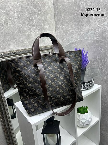#guess Код 0232-13. Штучна шкіра 730 грн 💳 Ширина по дну 32 см. Ширина вгорі 42 см. Висота 30 см. Дно 14,см. Висота довгих ручок 28 см. Одне відділення на блискавці, поділене навпіл перегородкою на блискавці. Всередині відкрита кишеня і кишеня на блискавці. З боків сумки кнопки для затягування куточків всередину. Над основною блискавкою кнопка. На зворотному боці кишеня на блискавці