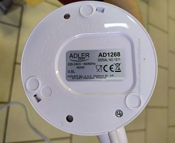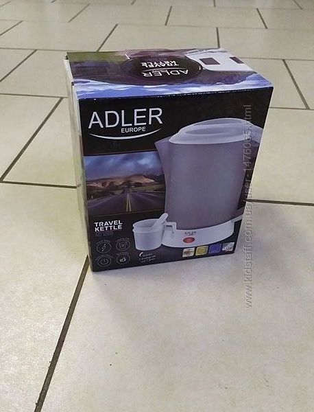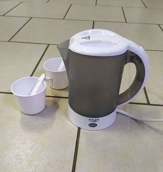 Привезенный из Германии новый электрический туристический чайный набор Adler AD1268. Мощность потребления (макс.) - 600 Вт, объем - 0,6 л, материал корпуса - пластик, тип нагревательного элемента - дисковый, индикатор уровня воды, автоматическое отключение, индикатор работы, фильтр от накипи, в комплекте 2 пластиковые чашки и чайные ложки, отличное европейское качество, страна производства - Польша. Предоставляется настоящая документированная гарантия - 6 месяцев.Оплата - наложенный платеж либо предоплата на карту. Способы доставки: самовывоз, Новая Почта, Укрпочта, Деливери, Justin (отправка 2 раза в неделю). Возврат товара – в течении 14 дней при сохранении упаковки и отсутствии следов его использования.