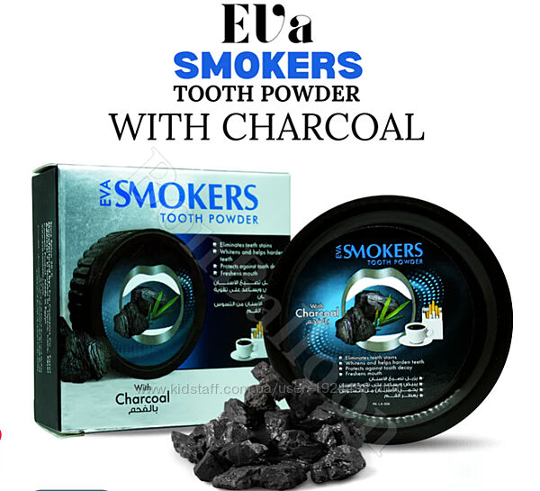 1. Eva Smokers Tooth Powder with Charcoal (Halal) Ціна 180 грнЗубний порошок для курців Eva з деревним вугіллям (Халяль) Натуральний трав´яний Потужний засіб для виведення плям, який допоможе вам позбутися плям від кави та цигарок на зубах