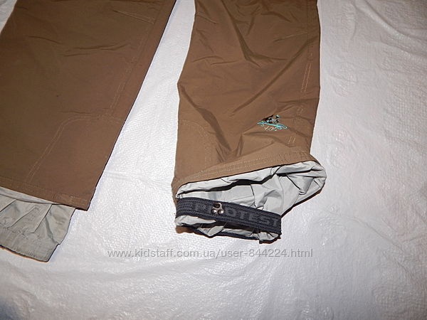 Внизу штанин - снегозащита с резиновым усилением, есть сноубордический крючок