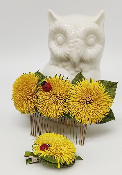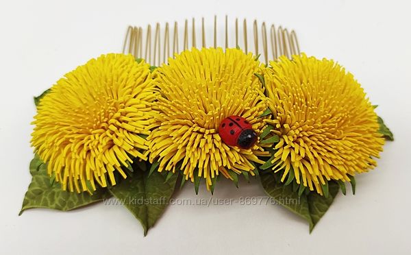 Подробное описание: Гребень с одуванчиками для волос handmade