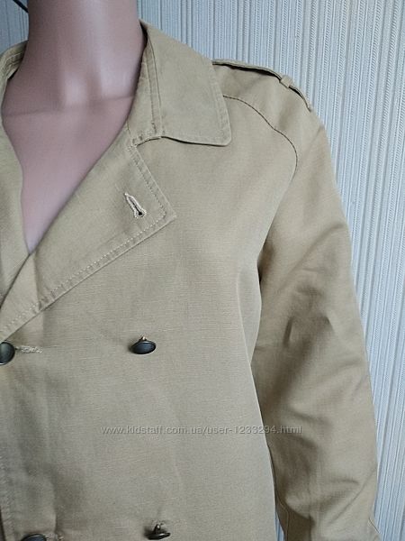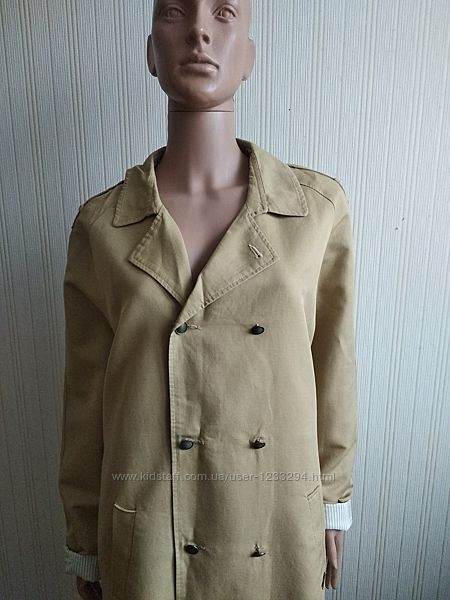 Стильный плащ Maison scotch размер указан 3.(С-М),длина 89см,ПОГ 56см,рукав реглан 74см. Состав:38% Коттон,43%лен,19%вискоза