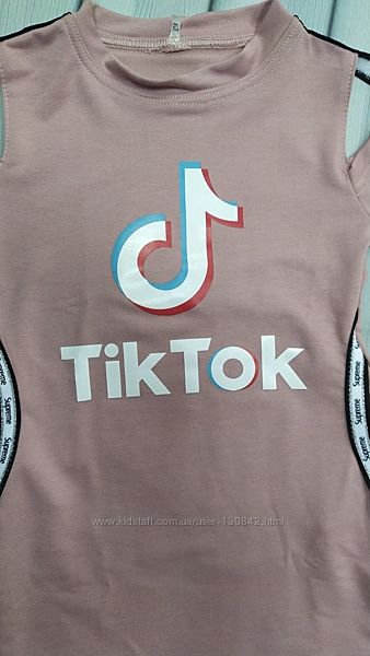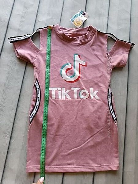 Туника Тик Ток для девочек Красивая, стильная туника Тик Ток понравится модницам. Впереди туника украшена логотипом Тик ТоК. Имеются 2 боковых врезных кармана украшенных лентой с надписью и люрексом. Рукава короткие. От плеча до середины рукава есть декоративный вырез укашенный лентой.Размер, как на фото