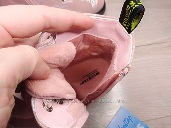 Демісезонні черевички WeeStep. Зовні замінник шкіри, в середині утеплені плюшем. Устілка утеплена із сюпінатором. Підійдуть на будь-який підйом за рахунок шнурівок і замочку збоку. Твердий задник. Підошва із міцної резини. Колір-пудра.Ціна-550грн🔥🔥🔥