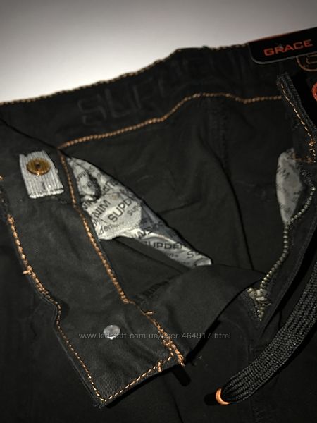 У цій модельці на поясі є гумка-фіксатор, талія регулюється шнурком, спереду дві кишені, з боків накладні кишені з клапанами 2 накладні кишені, посадка середня.