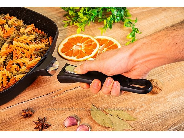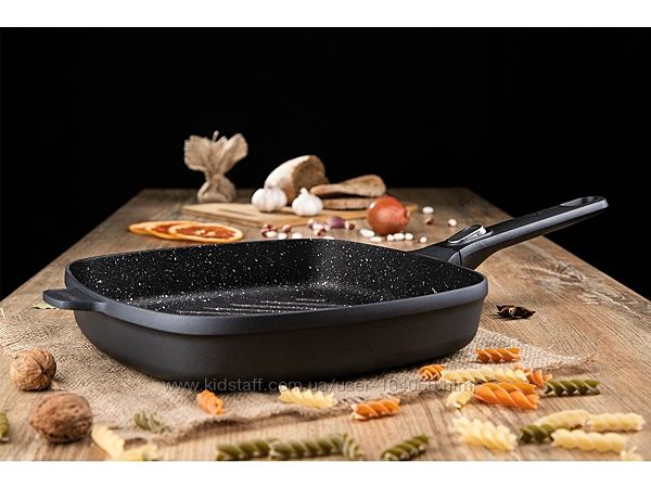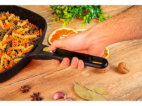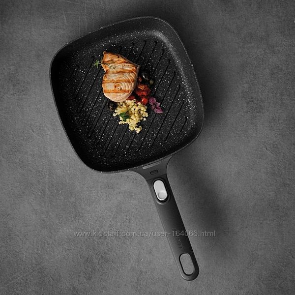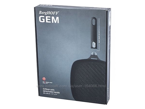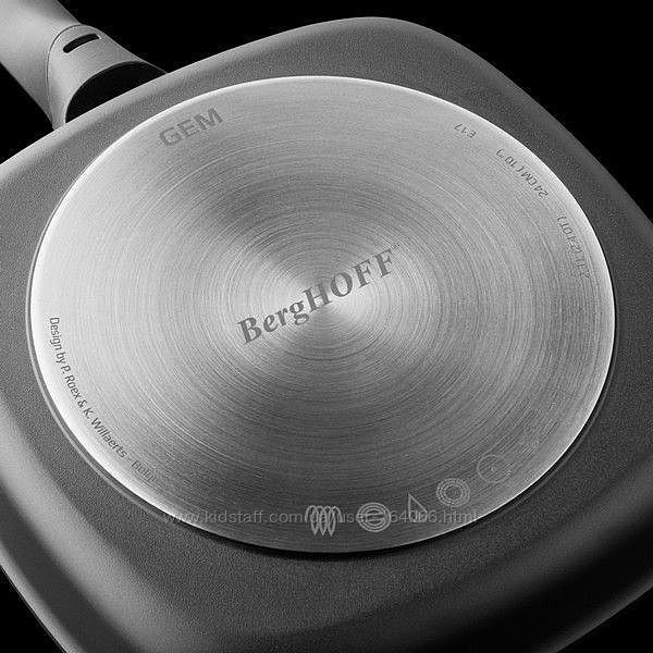 Бельгійська всесвітньо відома компанія Berghoff випускає широкий асортимент кухонного посуду, який характеризується своєю практичністю, функціональністю і сучасним дизайном. Сковорода-гриль від бренду Berghoff є новою колекцією Gem. Виготовлена з литого алюмінію, матеріалу, який не схильний до корозії довгі роки, володіє високою теплопровідністю і екологічністю. Зовнішнє покриття сковороди стійке до подряпин і механічних ушкоджень. Усередині – антипригарне покриття, яке має ідеально гладку поверхню для комфортного догляду зий посудом. Дно – суцільнолітій алюмінієвий диск, завдяки якому тепло розподіляється по усій поверхні рівномірно і швидко. Зручний механізм зняття/кріплення ручки (одним клацанням). Без кришки. Підходить для усіх типів плит.Рекомендується ручне миття.