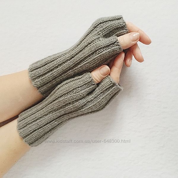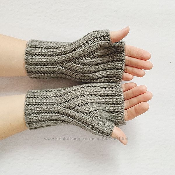 НА ЗАМОВЛЕННЯТеплі шерстяні мітенки універсального сірого кольору зв’язані з 100% мериносової вовни.