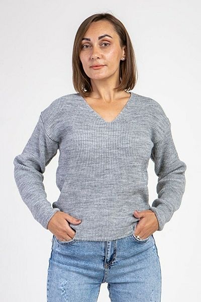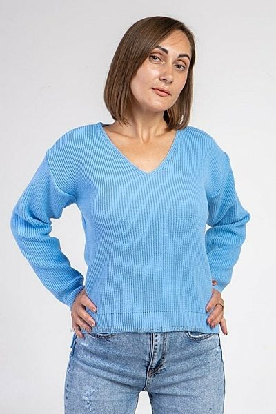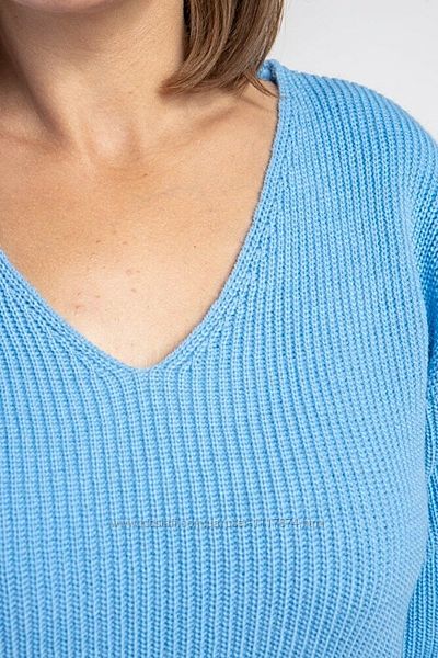 Пуловер об´ємного в´язання з м´якої пряжі. Виріб має спущену лінію плеча. Рукав довгий з гумкою на манжетах. Горловина – широкий V-подібний виріз. Спинка подовжена з боків розпірки на висоту гумки. Пуловер лаконічного дизайну з модного переплетення "напівфанг". Виріб виглядає ефектно і водночас залишається комфортним та практичним. Модель представлена у чотирьох кольорах. Пуловер – по-справжньому універсальний предмет жіночого гардеробу.