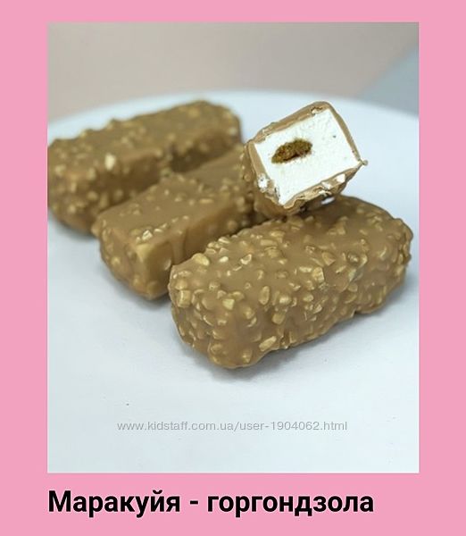 Крем на основе сыра с добавление горгондзолы и кули из маракуйя в начинке.