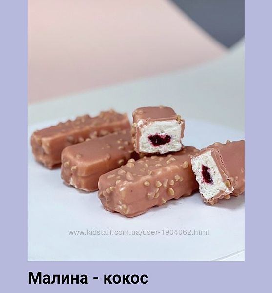 Батончик "Малина - кокос" Благородное сочетание нежного, взбитого, кокосового ганаша с ярким кули малины.