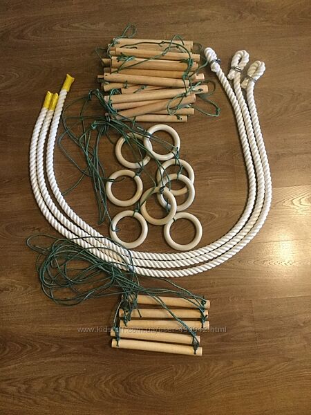 Реализуем канат х/б диаметром 25 мм по цене 100 гривен за метр. Отрежем любую длину. Разные варианты крепления.Также в наличии: кольца - 100 гривен за пару, верёвочная лестница 200 гривен, трапеция 30 гривен, маты от 400 гривен.