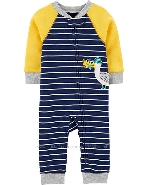 Хлопковые человечки (слипы) для мальчика фирмы Carter´s CША.Слип застегивается на кнопочки или молнию, украшен вышивкой и принтами. Пошит из ткани organic textile. Человечек очень мягкий и приятный на ощупь.