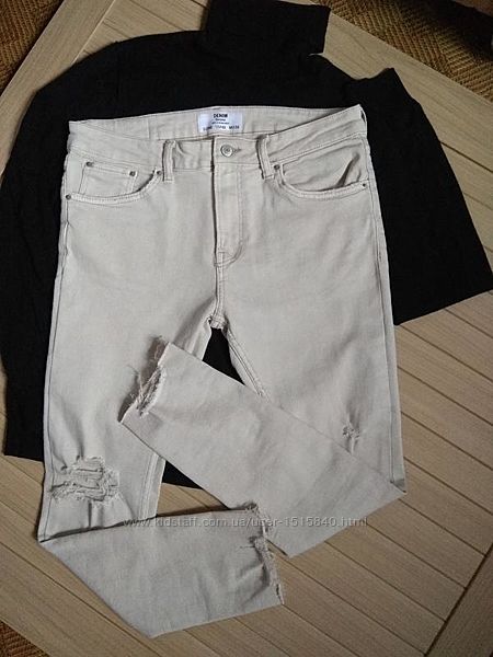 качественные джинсы-узкачи с эффектными порванностями от "Bershka" - указан размер 32W / наш примерно 46-48рр - вещь б/у - в отличном состояниицвет: бежевый /+ лёгкий серый оттенок