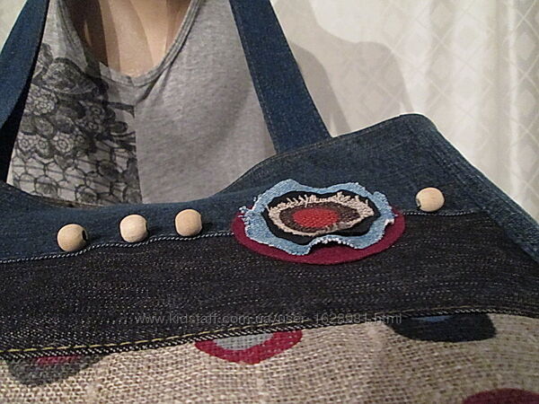 Вместительная сумка-шоппер из джинсов подкладка с карманом 32х38х8 см эксклюзив! hand made изделие подлежит машинной стирке в деликатном режиме в сетке