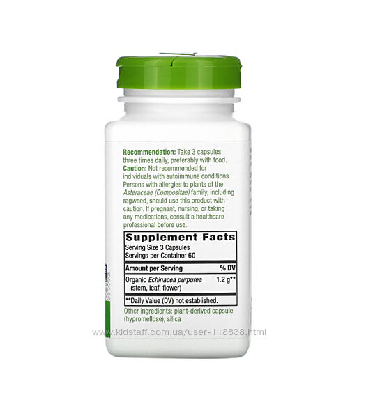Подробное описание: Natures Way, ехінацея пурпурна, 400 мг, 180 капсул