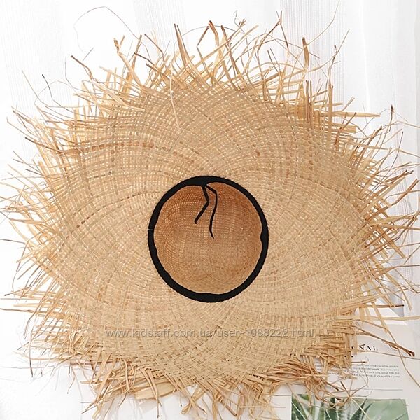 Подробное описание: Соломенная пляжная шляпа, летняя шляпа рафия с широкими полями и бахромой