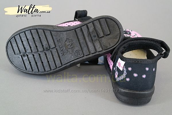 текстильні балетки - капці-мокасини української фабрики "WALDI". Рожевий з чорним на липучку. Підошва відмінно гнеться, підходять для прогулянок на вулиці, садок, школу. Якісне ортопедичне взуття.