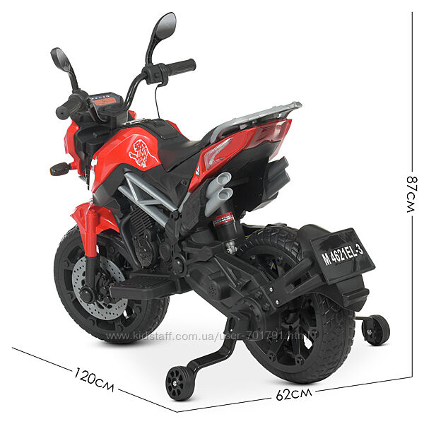 Детский мотоцикл M 4621 EL-1, мягкое сиденье - это красивый, качественный и надежный мотоцикл, который сможет стать достойным подарком для ребенка, данная модель оборудована дополнительными колесиками, что помогает начинающим пользователям удерживать равновесие.Детский мотоцикл M 4621 EL-1 своим видом напоминает настоящий спортивный мотоцикл, у него есть декоративные зеркала и ветровое стекло, во время поездки ребенок сможет наслаждаться звучанием любимой музыки, также у байка красиво светятся фары, что делает поездку максимально интересной.