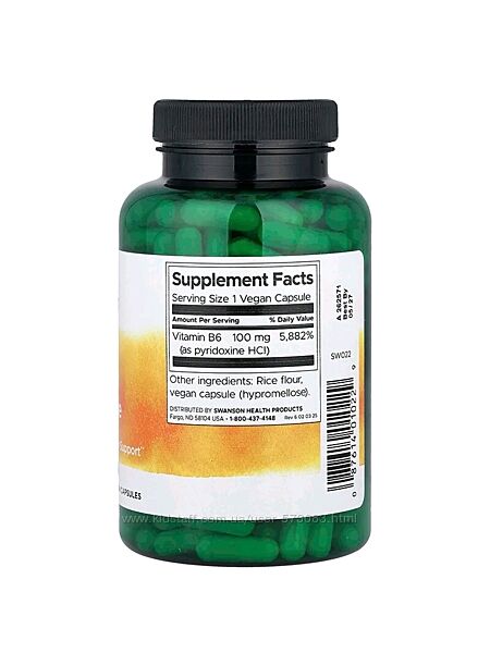 Подробное описание: Swanson витамин В6 100 мг - 250 таблеток / США