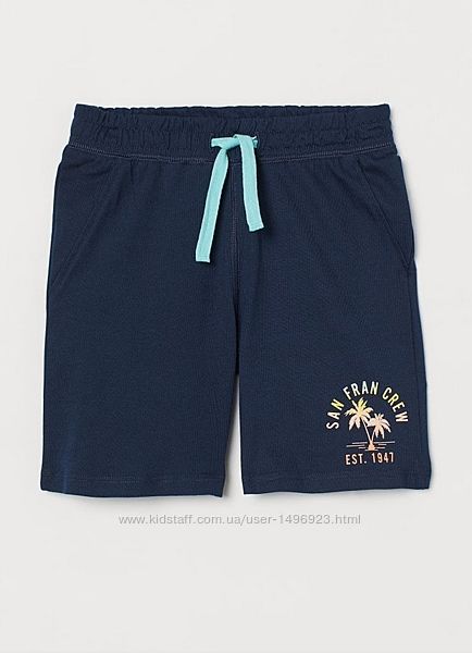 Трикотажные, летние шортики темно-синего цвета для мальчиков ТМ H&M (Англия).Прекрасно подойдут для летних прогулок.