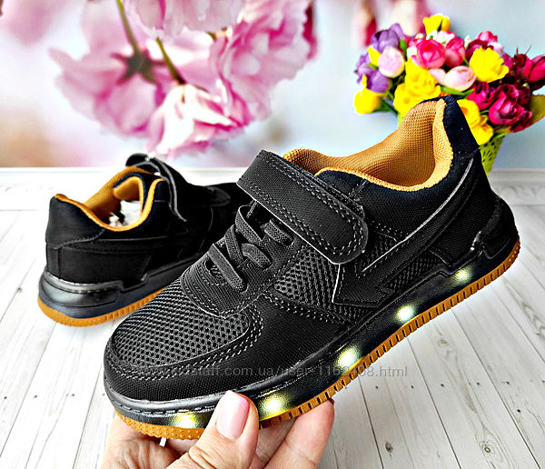 Подробное описание: Кроссовки кеды р-р 31-19,5 см с лед led подсветкой черные