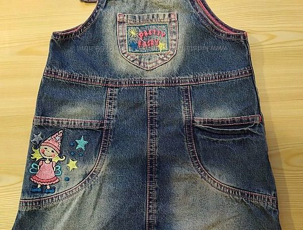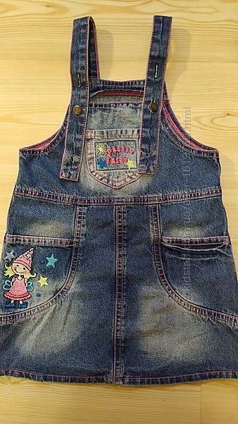 Продам джинсовый, нарядный, сарафан на возраст 4-5 лет, размер указан 104 (большемерит). в отличном состоянии.замеры:длина максимальная 60,5см, минимальная 54см . длина по переду без бретелей 44см.