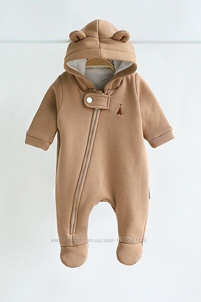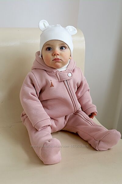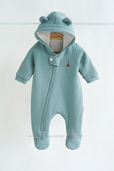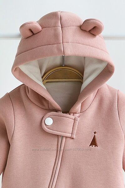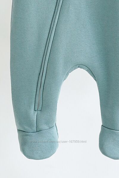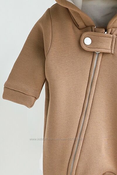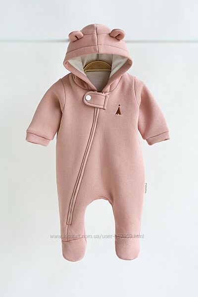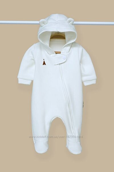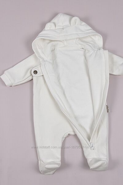 Комбінезон пошитий з футера з начосом зовні (на флісі), трикотажної бавовняної підкладки зсередини і зовсім без утеплювача. Саме таке поєднання робить комбінезон дуже універсальним та він ідеально підходить для виписки в демісезонну пору. У прохолоднішу погоду ви можете використовувати його в комплекті з ковдрочкою, а взимку взагалі як піддьов під зимовий комбінезон. Навесні ж, навпаки. Коли буде становитись з кожним днем тепліше, то комбінезон без утеплення прям саме те.