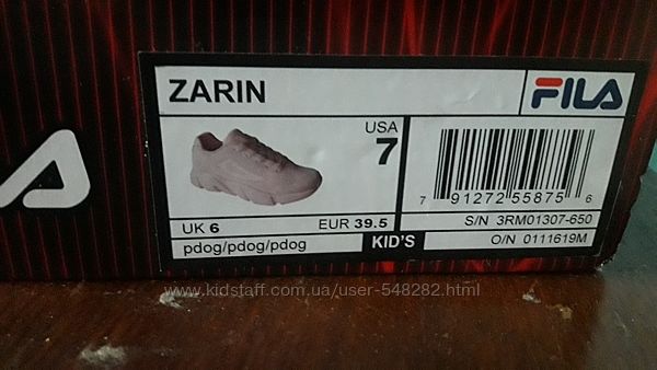 Подробное описание: Кроссовки Fila ZARIN р.38,5 -39 стелька 26см цвет-пудра