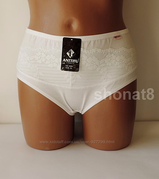 Женские трусики, пошиты из хлопковой ткани, хорошо тянутся, приятны к телу. Края трусиков обработаны тоненькой резиночкой, которая нежно прилегает к ножке. Трусики очень практичны в носке, посадка высокая. Украшает модель вставочка из ажурной ткани с цветочным узором. По линии талии вшита резиночка, которая предотвращает скольжению изделия на теле. Есть разные цвета и другие модели, смотрите все мои объявления. Фирма "Anttifu" качество – отличное. Отвечу на все дополнительные вопросы, а также, по запросу, сделаю дополнительные замеры с учетом Ваших параметров.Размер в наличии: