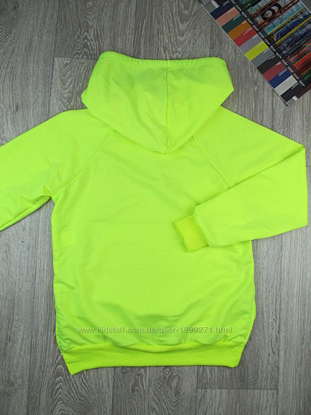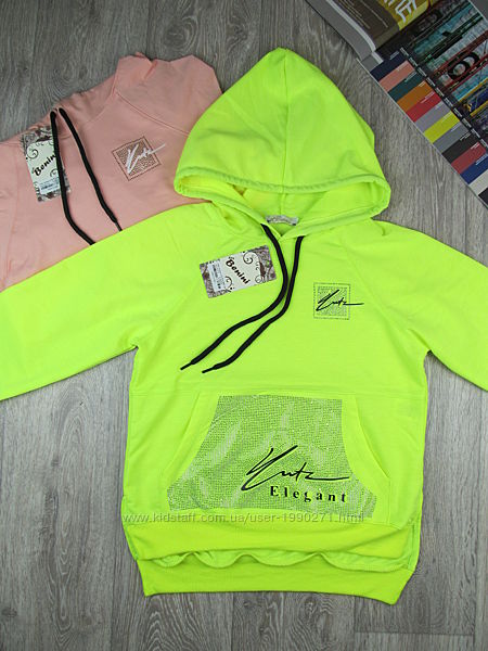 Стильное худи для девочки. Полномерное. Цвет розовая пудра и неон.Трикотаж двунитка.