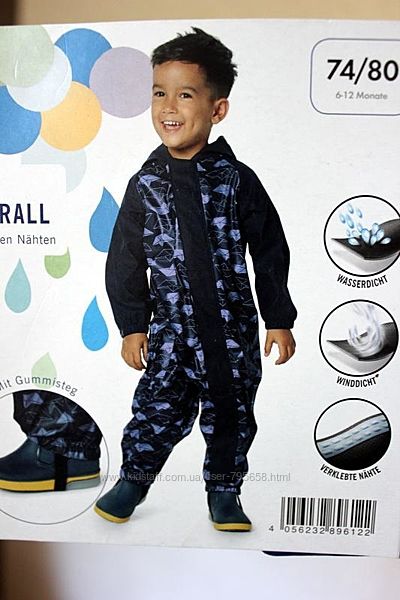 Подробное описание: Дождевик грязепруф комбинезон 68-74-80-83 Lupilu Германия от дождя