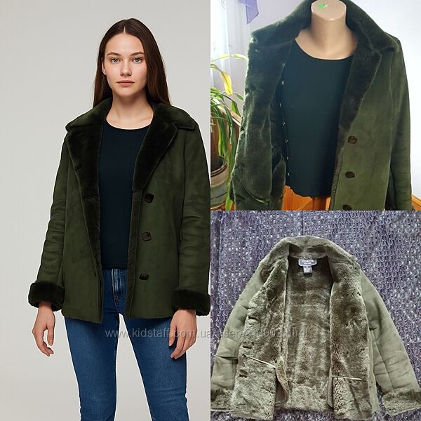 Брендовая вещь.Стильная женская,шик дубленки.Мягкий ,теплый и легкий эко-мех.Производства США.Красивый насыченый зеленый цвет.Размер 48-50 Смотрите замеры:длина-67,ширина в плечах-40,под рукавами-55-56Другие объявления продавца
