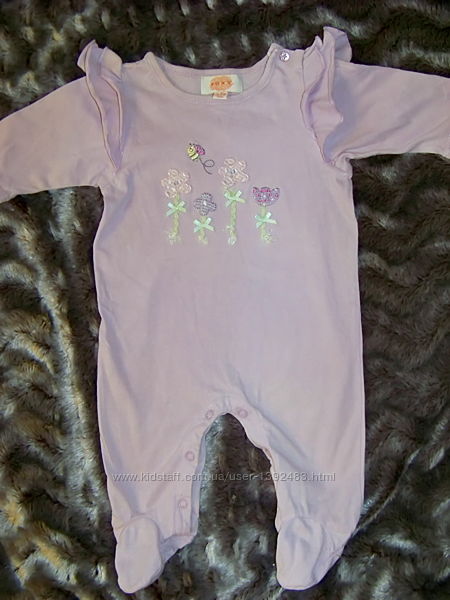 Подробное описание: Набор хлопковый 2 штуки нежно сиреневые с вышивкой человечек и ромпер 3-6