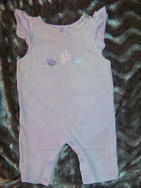 Набор хлопковый 2 штуки. Натуральные, нежно сиреневые с цветочной вышивкой лентами и гладью: человечек и ромпер, размер 3-6 мес. тм FOXY.Между ножками кнопочки, на плечиках пуговки.