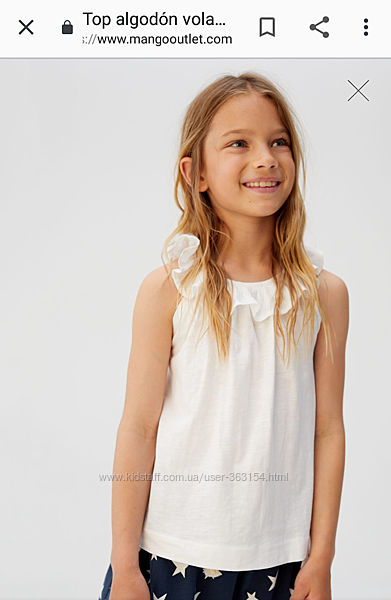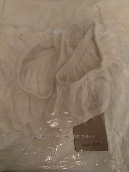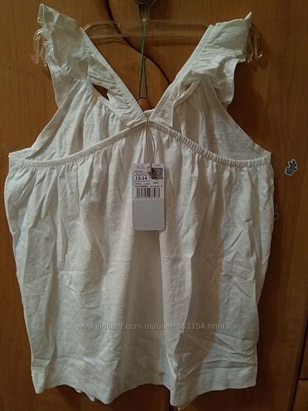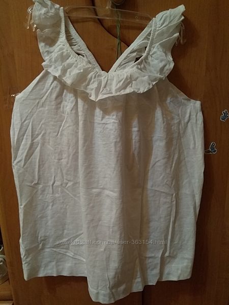 Летняя блузка, топик, майка с воланами Манго белого цвета . Трикотаж приятный, структура по типу льна (неоднородная). Состав 100% хлопок . Новая с биркой и в родной упаковке.размер 13-14лет производитель указывает на рост 164 см
