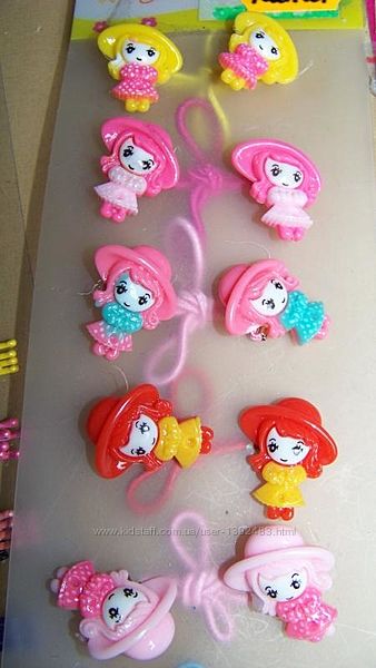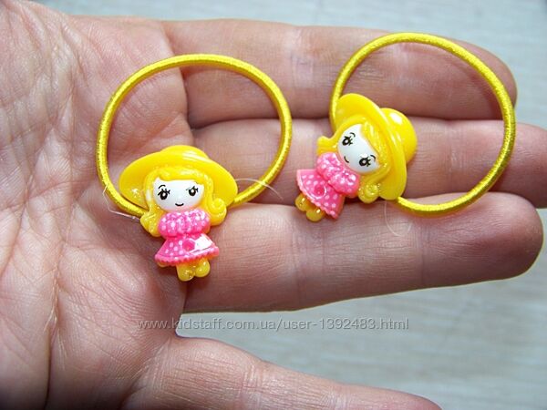 1. Резинки для волос с девочками-куколками розовые, красные и желтые. Резинки для волос тонкие 2 мм, но прочные и эластичные... с девочками-куколками 2.5 на 1.5 см... в красивой шляпке и в белый горох платье... 2 штуки в наборе 10 грн2. Резинка для волос с лаковой акриловой фигуркой кубика игрального 15 грн