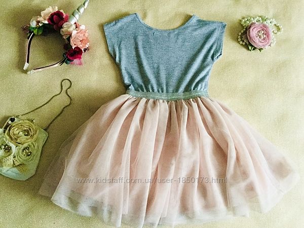 Young Dimension (Янг Дайменшн) пышное. Единорог. ДВА размера ! Нарядное. Верх: нежный Трикотажик с серебряным люрексом, шикарно переливается. На грудке Единорог, расшит разноцветными пайетками. Низ: супер- пышная Пудровая юбка на многослойном фатине. Верхний слой усыпан блёстками. , фото не передает. Серебряный поясок- резинка.платье Шикарное. Следов носки НЕТ! Состояние нового.
