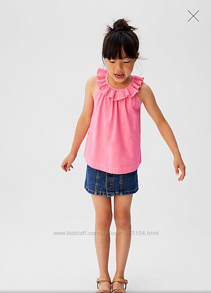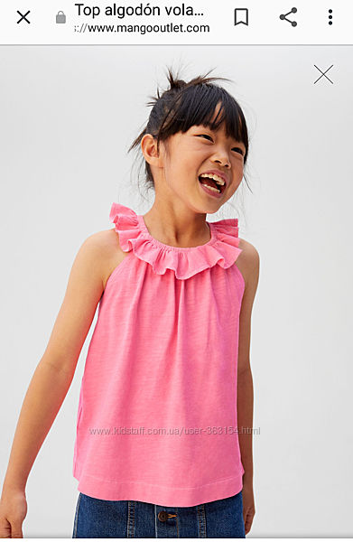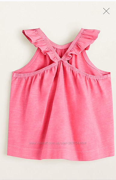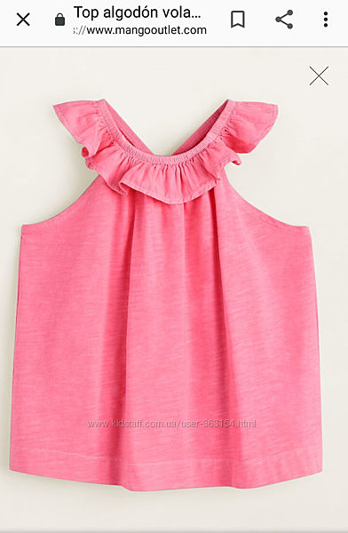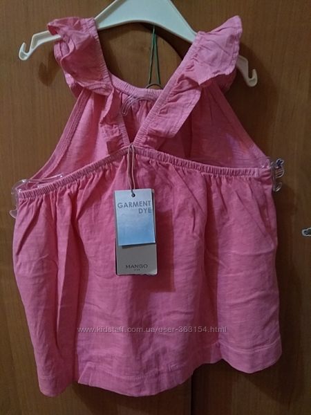 Летняя блузка, топик, майка с воланами Манго насыщенного розового цвета . Трикотаж приятный, структура по типу льна (неоднородная). Состав 100% хлопок . Новая с биркой и в родной упаковке.размер 6лет производитель указывает на рост 116см