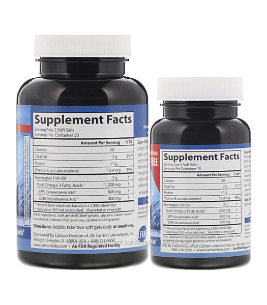 Подробное описание: Carlson, Super Omega-3, Супер Омега-3, 1200 мг, 100 та 30 капсул