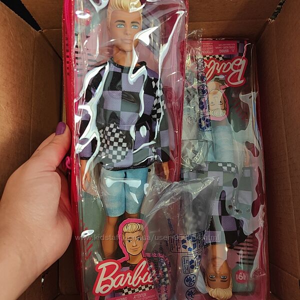 Пересылаю УП НП Куклы Ken Fashionistas остаются крутыми благодаря модной внешности и индивидуальному стилю. Кукла Кен имеет оригинальную форму тела и носит черно-фиолетовый клетчатый свитер с клетчатым сердцем и джинсовые шорты. Белые кроссовки завершают модный современный образ. У куклы Кена скульптурные светлые волосы. Многоразовый виниловый пакет с застежкой-молнией можно использовать для хранения куклы или других предметов одежды и аксессуаров Барби, а дети могут украсить его своими художественными принадлежностями, например наклейками. Высота 29см