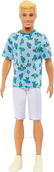 Barbie Fashionistas Ken Fashion Doll #211 with Blonde Hair Wearing Removable Blue Cactus Tee, White Shorts & Sneakers