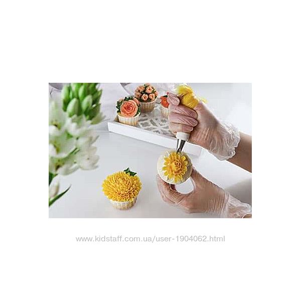 Программа курса составлена так, что Вы сможете научиться изготавливать крем, работать насадками, создавать уникальные цветы (розы, пионы, гортензии, георгины, разные соцветия, веточки,листья) и овладеете навыками подбора цветовой гаммы, а также переноса цветов на торт.