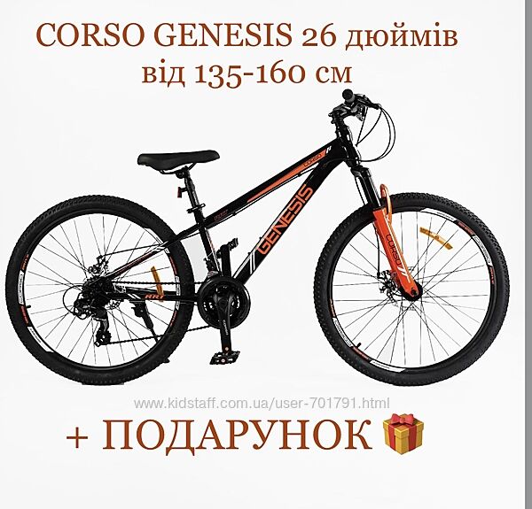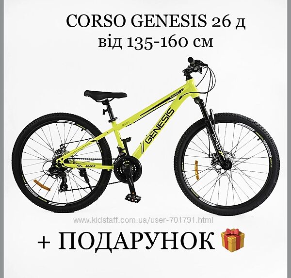 CORSO GENESIS 26 -якісний стильний гірський велосипед з дисковими гальмами