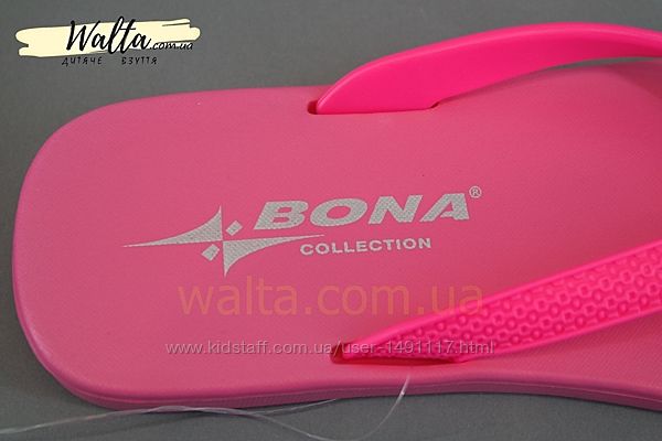 тільки рожевий колірВьетнамки Bona. Выполнены из качественного материала PVC. Материал мягкий, приятный на ощупь. Легкие. Удобство и комфорт при ходьбе. Подошва частично гнется. Рифленая поверхность подошвы гарантирует безопасность при ходьбе по мокрым поверхностям.