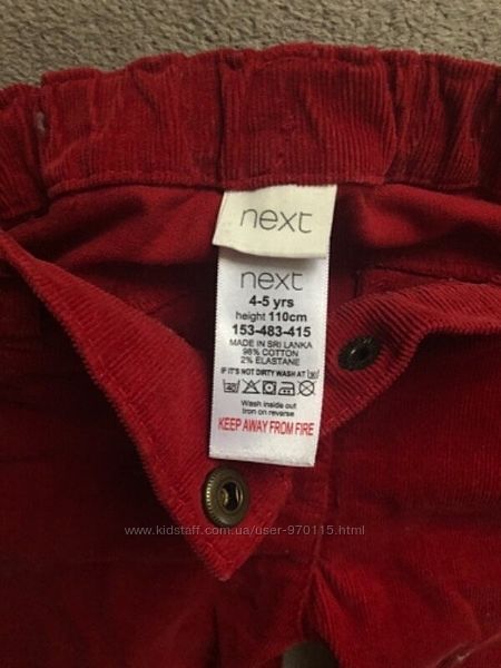 Подробное описание: Красные вельветовые джинсы next, 4-5 лет, 104-110 см