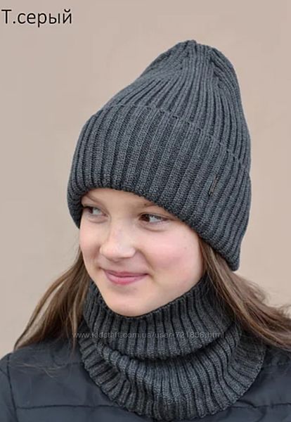 Комплект Рубчик шапка + хомут.Підійде для дітей від 6 років, підлітків та дорослих.